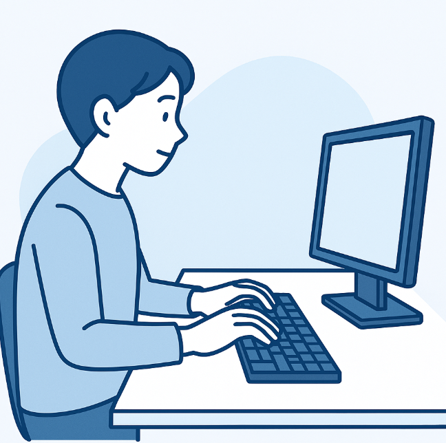 続いて意識したいのが視線の固定です。手元を見ず、常にモニター上の文章や入力欄に目を向けることが大切です。初めのうちは入力が遅くても問題ありません。間違いながらでも「画面を見続ける」ことを徹底することで、脳がキー配置を自然に記憶し始めます。