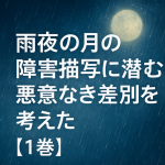 雨夜の月2巻は、新しい人物が次々と登場することで、物語の幅が一気に広がった巻でした。三浦先生という存在は、奏音にとって新しい居場所や視点をもたらし、これまで学校の中で抱えていた息苦しさを少し和らげる役割を果たしていました。公平と平等にまつわる言葉も、作品が扱うテーマと密接に関わっており、今後の描写につながる大事な要素として印象に残ります。