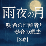 三浦先生の登場によって、これまで舞台になっていた教室以外の場が一気に広がり、奏音の世界が少しずつ多層的になっていきました。雨夜の月という作品がもともと持つ静かな雰囲気を壊すことなく、新しい風だけを自然に加えてくるような役割を担っている人物だと言えます。今後も物語に深く関わることが予想され、奏音と咲希の関係にどう影響していくのかにも注目したい部分です。