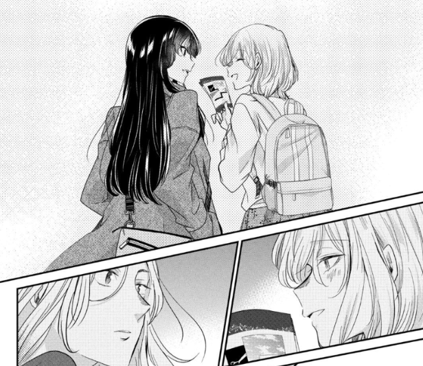 明は自分の高校時代の経験を、友達の話として咲希に伝えます。同性から告白されて付き合っていたこと、その相手がデートで女性らしい格好を求めてきたこと、自分に向けられていたのは恋愛感情ではなく役割への期待だったと気づいたこと――作中に描かれている内容はこの範囲です。説明は短いながら、複雑な問題がそのまま提示されている印象があります。