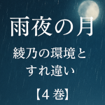 雨夜の月3巻では、奏音の中学時代に関わりのあった綾乃と咲希が偶然出会います。この場面で語られる内容は多くありませんが、綾乃の家庭環境に触れる部分が描かれており、作中で明確に示されているのは、綾乃が弟や妹の世話を日常的に行っていたこと、母親と暮らしていること、そして家のことで手いっぱいになりやすい状況にあったという点です。