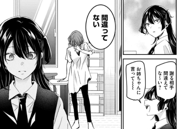 その後、凛音の母が凛音に対して謝る場面があります。凛音はその謝罪に対し、「謝る相手が違う、お姉ちゃんに言って」と返しますが、母は「間違っていない」と答えています。この短いやり取りの中で、凛音がこれまで抱えていた気持ちに触れる描写が含まれています。
