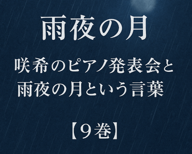 雨夜の月9巻では、咲希のピアノ発表会が描かれます。咲希は演奏前に、今回の演奏は奏音のために弾くと宣言しています。発表会の場面では、咲希がどのような思いでピアノに向かっているのかが、演奏前後の会話を通して示されています。