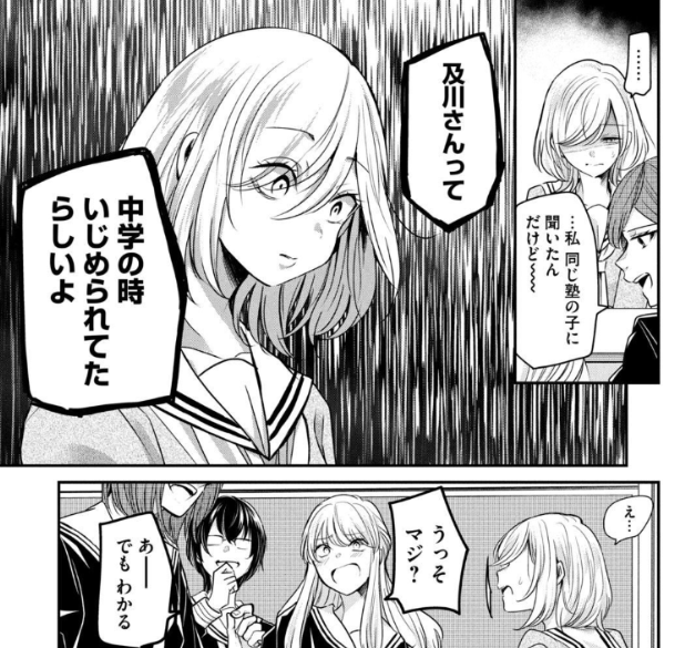 雨夜の月1巻では、富田は咲希たちと同じクラスの生徒として登場します。奏音の自己紹介の場面で、富田グループは否定的な反応を示し、奏音に対して反発する側に立ちます。この場面では、富田が奏音に好意的でないことがはっきり分かります。