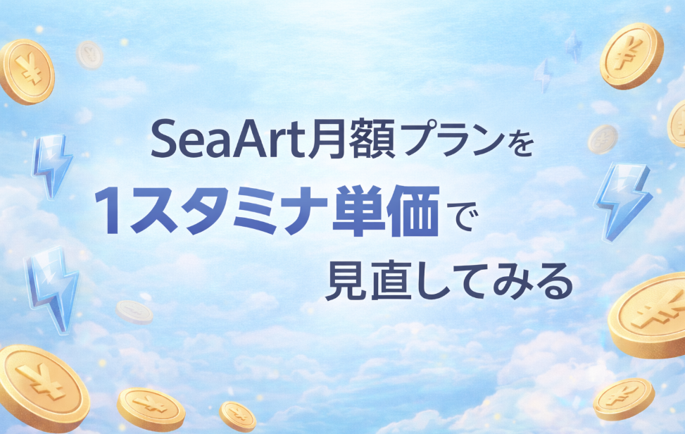 本記事では、SeaArtの月額プランについて、通常時とセール時それぞれの1スタミナあたりの料金を軸に比較してきました。数値で確認すると、特にセール時においては、マスター・プロ・スタンダードの1スタミナ単価がほぼ同水準に揃っており、高いプランほどスタミナ面でお得になるわけではないことが分かります。月額料金の差は、そのままスタミナ単価の差には直結していません。