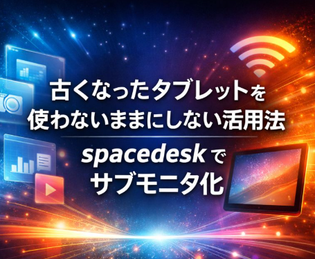 この記事では、使わないままになりがちな古くなったタブレットを、spacedeskを使ってサブモニタとして活用する方法を紹介します。メリットだけでなく、実際に使う際に気をつけたい点も整理しながら、どんな使い方に向いているのかを分かりやすく解説していきます。