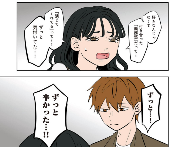 最終的に、桃香は湊から本心では小雪を想っていることを告げられ、関係は終わります。この別れは、桃香にとって一方的に裏切られたという形ではなく、薄々感じていた不安が言葉として突きつけられた瞬間でもありました。付き合っている間に抱えていた違和感が、はっきりとした形で示される場面だったと言えます。