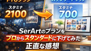 SeaArt SerArtのプランをプロからスタンダードに下げてみた正直な感想 SerArtのプランをプロからスタンダードに下げました。変える前に気になっていたのはスタミナ量です。プロは2100、スタンダードは700。この差は数字で見るとかなり大きく感じます。実際に使ってみるとどうなのか、体感はまったく別物なのか、それ... 2026.03.18 SeaArt
