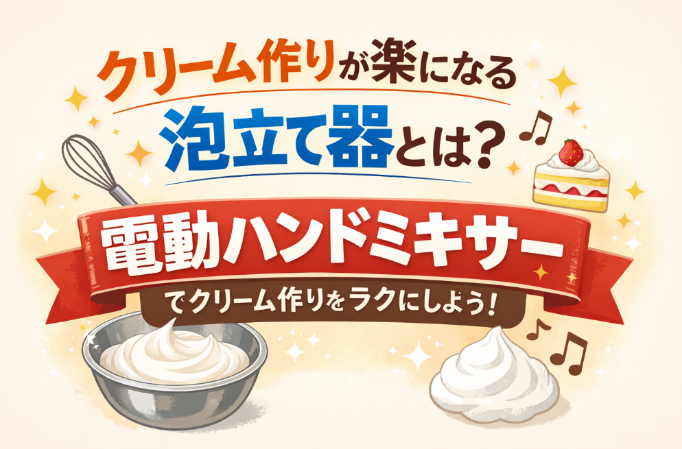 この記事では、クリーム作りのために購入した電動ハンドミキサーという泡立て器について、購入のきっかけや実際に使ってみた感想を紹介していきます。クリーム作りを少し楽にしたいと考えている方の参考になればと思います。
