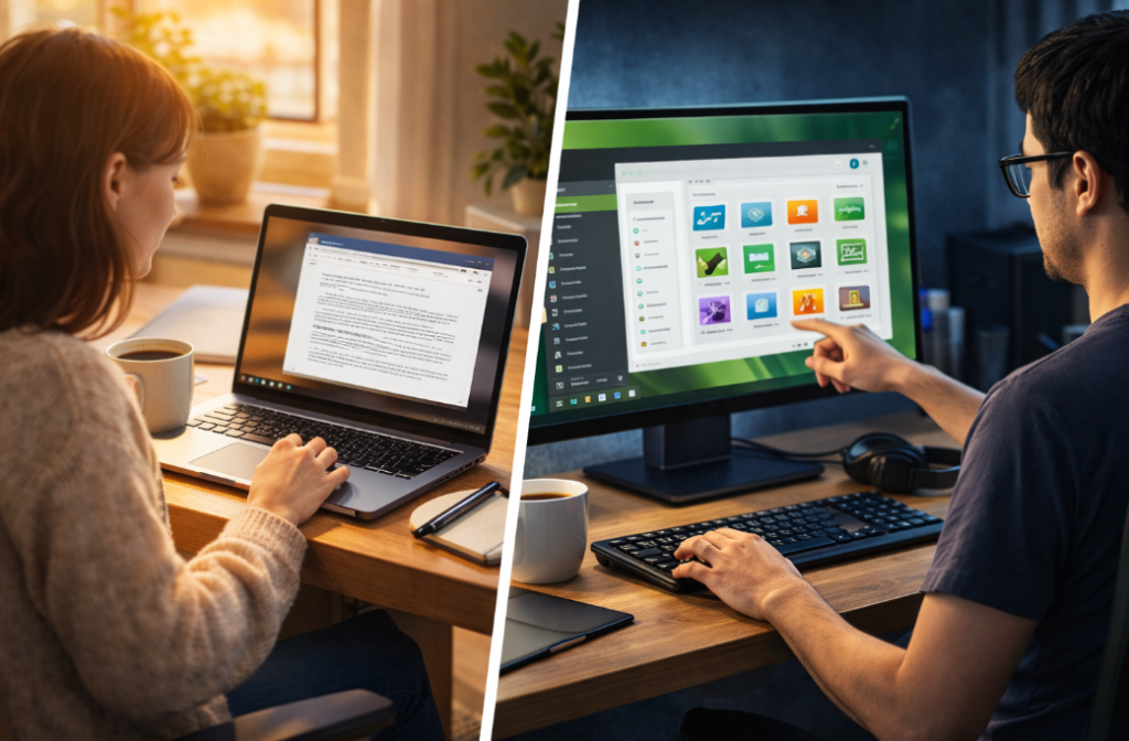 一方でWindowsは、仕事や学習で使う特定ソフトが決まっている人、周辺機器との互換性を重視したい人、一般向けサポートの多さを重視したい人に向いています。ゲームや業務ソフトなど、対応前提がWindowsに寄っている分野では、今でも強い優位があります。つまり、性能だけでなく、何をしたいかで比較するのが現実的です。