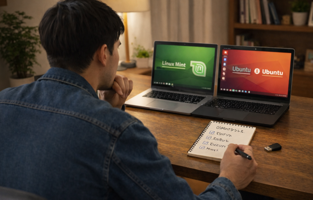 ただ、これから初めてLinuxを触る人にとって重要なのは、理屈より最初の数日でつまずかないことです。その観点では、初心者向けの使いやすさはLinux Mintに分があると考えてよいです。Ubuntuを選ぶ明確な目的があるなら話は別ですが、単純に使いやすいデスクトップLinuxを探しているなら、まずLinux Mintを候補の先頭に置く判断で問題ありません。比較して迷ったときほど、土台より初期体験を見るべきです。