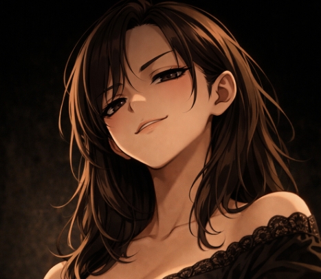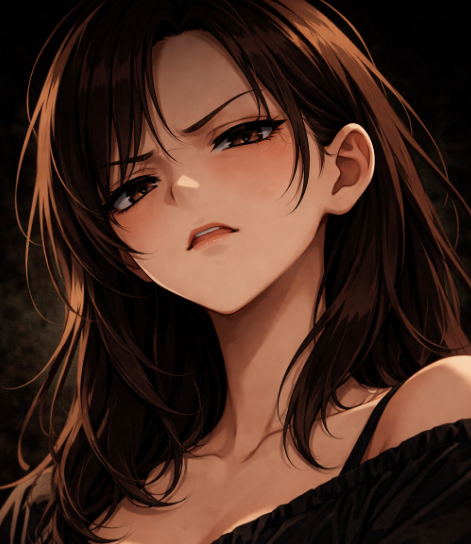 - best quality, 1girl, solo, portrait, looking down, mocking smile, scornful expression, contemptuous gaze, slightly raised chin, narrow eyes, confident pose, high contrast, elegant dark outfit